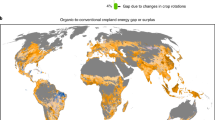 Inventory data for each activity, including the differentiation between energy use in conventional and organic activities, were taken from LCA-databases, i.e. the ecoinvent 2.0 database and other sources62,63,64. Energy use is linked to farm activities and includes energy use for seeds, crop protection, fertilization, mechanization, organic fertilization, fences, stables and depots for roughage. Data for animal production were taken from the ecoinvent 2.0 database and other sources64, 65. Energy use for fertilizer production is modelled specifically for the fertilizer quantities used for each crop in each country. Energy carriers inputs were modelled according to the ecoinvent 2.0 and SALCA inventories66. Due to lack of data for trade, transportation energy use was disregarded. We emphasize that absolute numbers on energy use may be biased due to the data quality behind ecoinvent 2.0, which is partly rather old, but relative differences between scenarios are much less sensitive to such data problems.