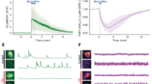 To test the suitability of GEPIIs in vivo, recombinant GEPII 1.0 was loaded into the exposed striated muscle (musculus cremaster) of a mouse (Fig. 4a). Tissue loading was achieved by incubation with GEPII 1.0 for 20 min. Intravital microscopy showed that GEPII 1.0 diffused deep into the cremaster muscle without entering blood vessels, accumulating in the interstitial spaces (Supplementary Fig. 8). The fluorescence signals remained stable in this experimental setup, indicating that the recombinant protein probe was stable when applied in vivo. To test the functionality of GEPII 1.0 in the muscle, [K+]ex was manipulated by the addition and removal of KCl (Fig. 4b, c). Increasing [K+] significantly increased the FRET ratio signal of recombinant GEPII 1.0 at different tissue depths, while the washout of K+ reduced the signals (Fig. 4b). The FRET ratio decrease upon K+ washout was slower in deeper tissue (Fig. 4b) and faster in more superficial tissue. These results demonstrate the feasibility of using GEPIIs to monitor spatial and temporal patterns of [K+]ex changes in vivo.