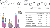 The recombinant P450nor from the fungus Fusarium oxysporum was expressed in Escherichia coli BL21(DE3) using the expression vector pRSET-C. The cell was cultured in TB medium at 30 °C. After a 4-hour culture, IPTG was added to a final concentration of 0.05 mM to induce P450nor expression, followed by overnight incubation at 30 °C. P450nor was purified from the harvested cells as follows36. The harvested cells were suspended with 5 mM potassium phosphate buffer (pH 8.0) containing 2.5 mg mL−1 lysozyme and one tablet of protease inhibitor cocktail (complete, EDTA-free Protease Inhibitor Cocktail Tablets, Roche Diagnostics). The cells were lysed by sonication, and the soluble fraction was obtained by centrifugation. The soluble fraction was dialyzed against 5 mM potassium phosphate buffer (pH 8.0) and was loaded onto the anion exchange column (HiPrep DEAE FF 16/60, GE Healthcare) pre-equilibrated with 5 mM potassium phosphate buffer (pH 8.0). The P450nor fraction was eluted with a linear gradient of 5–50 mM potassium phosphate (pH 6.0). After buffer of the eluted P450nor was exchanged to 10 mM potassium phosphate buffer (pH 6.0) containing 10% (v/v) glycerol by dialysis, the P450nor fraction was loaded onto the anion exchange column (HiPrep DEAE FF 16/60, GE Healthcare) pre-equilibrated with 10 mM potassium phosphate buffer (pH 6.0) containing 10% (v/v) glycerol. P450nor was eluted with a linear gradient of 10–20 mM potassium phosphate. The buffer of the purified sample with an A 413/A 280 ratio >1.8 was exchanged with 20 mM potassium phosphate buffer (pH 6.0) containing 10% (v/v) glycerol using a centrifugal filter unit (Amicon Ultra 30k, Merck Millipore). The sample concentration was determined by absorption spectroscopy50.