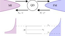 For obtaining a basic understanding of the charge transport in an MTJ it is most convenient to examine the electronic DOS of the electrodes and their occupation (Fig. 1a–c). In this picture, a temperature difference ΔT results in different broadenings of the occupations in the hot and cold electrode according to the Fermi-Dirac distribution. This difference in occupation generates diffusion currents between occupied (dark color) and unoccupied states (bright color). Accordingly, above the chemical potential μ electrons travel from the hot to the cold electrode, while below μ electrons travel conversely from the cold to the hot side.