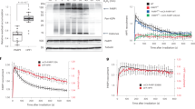 ChIP assay was performed using a kit in accordance with the manufacturer’s instructions (EMD Millipore). The antibodies used for the ChIP assay are described above. Real-time quantitative PCR (qPCR) of ChIP-enriched DNAs was performed using the primers listed in Supplementary Table 4. Percentage input was determined by comparing the cycle threshold value of each sample to a standard curve generated from a 5-point serial dilution of genomic input, and compensated by values obtained using normal IgG. IgG-negative control immunoprecipitations for all sites yielded < 0.05% input. All reactions were performed in triplicate with samples derived from three experiments.