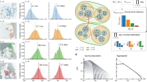 The four data sets DS1–DS4 are from mainland China (Supplementary Data 1 and 2), the contiguous United States, Cote d’Ivoire, and Belgium, respectively. Sets DS1, DS2, and DS4 are the check-in records of social networks35,37 in their respective countries, which contain the time and locations of user check-ins. Set DS3 is a mobile phone call detail record36 that collects the time and positions of users making phone calls or sending text messages in a 5-month period, where the spatial locations are determined within counties. In this case, the central city of each county is taken as the location of the individual. Since we focus on movements among cities, all the positions within a city are regarded as the same with an identical city label. Table 1 lists the detailed information about each data set, from which a complete trajectory of each user moving among different cities can be obtained for the entire time duration of the data record. The results of statistical analysis of individual trajectories are shown in Fig. 3, while those at the population level are presented in Fig. 5.