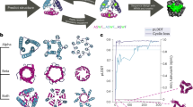 Structures were calculated without explicit, manual assignment of distance restraints by a modified ambiguous restraints for iterative assignment (ARIA) protocol25,26, making a stepwise use of data from proton- and carbon-detected experiments. 1H-detected restraints between amide protons are very appropriate for constraining the backbone conformation of a protein that is almost entirely β-sheet. Therefore, in the first four iterations of the protocol, these were the only distance restraints employed (Supplementary Fig. 10). After the first iteration, the lowest-energy structures clearly show the shape of a β-barrel (Supplementary Fig. 13). Starting with the fifth iteration, the more ambiguous 13C–13C distance restraints were added. ADRs that did not contribute an assignment option within the distance violation tolerance for at least half of the lowest-energy structures from the previous iteration step were rejected by ARIA’s violation analysis. Supplementary Figures 10–12 show the degree of restraint disambiguation by the ARIA protocol. No hydrogen bond restraints were added in those initial structure calculations, yielding an initial structural bundle with a pairwise backbone root mean square deviation (rmsd) of 2.06 ± 0.42Å for residues in the β-sheet (Supplementary Fig. 13, iteration 8). Guided by this structure, 92 co-linear hydrogen bond restraints were derived for the β-sheet region, 2 for every interacting pair of residues in two adjacent β-strands if the characteristic cross-peak pattern indicating hydrogen bonding was observed in the 3D spectra and TALOS+ results indicated β-sheet secondary structure.