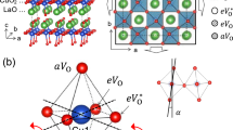 To relate our observations more directly to changes in electronic structure, we grew a set of strained (20 nm) and relaxed (125 nm) LSCO films on LSAO (compressive strain) and LAO (tensile strain) under “as-grown” conditions (no post-annealing) and probed their electronic structure using bulk-sensitive, polarization-dependent XAS. Figure 2b shows fluorescence yield (FY) XAS spectra of the O K-edge pre-peak region for both sets of films. For tensile-strained films, we observed a spectral weight transfer from peak A, the presence of which was attributed to doping-induced holes, to the upper Hubbard band (peak B) common to under-doped La2−xSr x CuO420,21,22. This spectral weight transfer suggests that as-grown, tensile-strained LSCO had a more hole-depleted state (i.e., more oxygen vacancies) than compressively strained LSCO. Additionally, Cu L-edge spectra are shown in Fig. 2c, d for the same set of films, where E⊥ab and E∥ab represent the polarization-dependent spectra collected along the out-of-plane and in-plane directions, respectively. The Cu L3 peak intensity for E∥ab was similar for all films, indicating that the number of unoccupied \(3d_{x^2 - y^2}\) states was nominally the same. Consistent with other Ruddlesden–Popper (2-1-4) cuprates, the overall weight of the unoccupied \(3d_{x^2 - y^2}\) states was larger than that of the \(3d_{z^2 - r^2}\) states20. Furthermore, relaxed and compressive-strained LSCO exhibit similar absorption spectra for both polarization configurations, which is remarkably consistent with the fairly similar hole carrier density (i.e., oxygen content and kinetic behavior) determined for these films. However, fully tensile-strained LSCO contains additional\(3d_{z^2 - r^2}\) states not observed in the other three films. Since we have considerable evidence for a hole-depleted state in tensile-strained LSCO, the polarized XAS data strongly support that the density of states, specifically the distribution of holes, in these films is dictated by phenomena different from those that dominate in the chemically substituted cuprates. Although it is not the main focus of this work, this behavior could be related to a reduced Cu–Oapical distance induced by tensile strain, which is known to lower Tc23. Since the films were grown under identical conditions, we reiterate that the observed changes in the absorption spectra under these as-grown conditions were driven by the different kinetic time scales for oxygen loss between tensile-strained and compressive-strained LSCO.