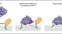 Kong, E. et al. Dynamic palmitoylation links cytosol-membrane shuttling of acyl-protein thioesterase-1 and acyl-protein thioesterase-2 with that of proto-oncogene H-ras product and growth-associated protein-43. J. Biol. Chem. 288, 9112–9125 (2013).