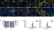 Cells were cultured depending on the experiment, washed once with PBS to remove media components, and fixed with 4% PFA for 20 min at room temperature. Cells were washed three times with PBS and blocking buffer containing 3% goat serum and 0.25% Triton X-100 in TBST (TBS-Tween) subsequently added for 30 min. Primary antibodies diluted in blocking buffer were then added and incubated overnight at 4 °C. Cells were then washed three times with TBS-Tween, and corresponding secondary antibodies coupled with fluorophores were added and incubated at room temperature for 1 h. Coverslips were washed and mounted on glass slides with FluorSaveTM reagent and imaged using Zeiss observer Z1. Images for cell count and neurite outgrowth were analyzed using ImageJ. Antibodies used in this study are as follows: MAP2 1:1000 (Sigma M9942), SMI312 1:1000 (Abcam ab24574), Tau 1:2000 (DAKO A0024), ISL1/2 1:50 (DSHB 39.4D5), ChAT 1:250 (EMDMillipore AB144P).