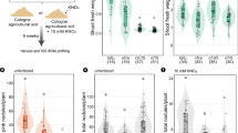 The nitrogenase activity of nodules was indirectly determined by measuring the acetylene reductase activity59. Nodulated roots detached from intact plants were placed in 20 ml vials, and after injection of acetylene they were incubated for 30 min at 25 °C. Then, the amount of ethylene produced was measured using a gas chromatography.