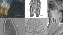 For gland imaging, adult bugs were anaesthetised with CO2 and fixed in either neutral buffered formalin (MRI) or Bouin’s fixative (μCT). For MRI, Magnevist® (gadopentetate dimeglumine; Bayer) was added to enhance contrast and the bugs imaged on a 16.4T Bruker Avance MRI spectrometer at a resolution of 30 μm. For μCT, fixed specimens were dehydrated using a graded ethanol series and incubated overnight in 1% alcoholic iodine solution (Carl Roth #X864.1). After washing in 99.8% ethanol, the specimens were critical point dried using an automated dryer Leica EM CPD300 (Leica Microsystems)35 and mounted on an insect pin with a hot glue gun. Scanning was performed using a XRadia MicroXCT-200 X-ray imaging system (Carl Zeiss) equipped with switchable scintillator-objective lens units, which gives a flexible field of view35. Tomographies were performed at ×10 magnification, exposure times of 2 s and calculated pixel sizes of 1.96 µm. X-ray source settings were 40 kV and 8 W resulting in 200 mA source current. Tomography projections were reconstructed using XMReconstructor software (Carl Zeiss) yielding image stacks in TIFF format. All scans were performed using Binning 2 (summarising 4 pixels, resulting in noise reduction) and subsequently reconstructed using Binning 1 (full resolution) to avoid information loss. For both MRI and μCT data, anatomical structures were then visualised by manual and automated segmentation and 3D visualisation using ITK-Snap 3.2.036.