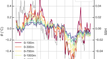 The ADT and surface geostrophic velocity fields between 1993 and 2015 were measured by the satellite altimetry. The Ssalto/Duacs altimeter products are produced and distributed by the Copernicus Marine and Environment Monitoring Service (http://www.marine.copernicus.eu). The eddy kinetic energy is defined as EKE = [(u′)2 + (v′)2]/2, where u′and v′ are derived by removing the long-term mean from the original surface geostrophic velocity. These data are used to make Figs. 2, 3 and Supplementary Fig. 1.