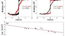 To minimize data loss for large memory capacities (e.g., 1 Gb), as well as to meet the industry standard retention time of 10 years, Δ > 60 is required. This factor can be expressed as: \({\it \Delta} = \frac{E}{{{k}_{\mathrm{B}}T}} = \frac{{M_{\mathrm{s}}H_{\mathrm{K}}V}}{{2{k}_{\mathrm{B}}T}}\), where E is the energy barrier between two magnetization states, Ms the saturation magnetization, HK the anisotropy field, V the volume of the free layer, kB the Boltzmann constant, and T the absolute temperature. To further understand the situation of Δ in this case, we quantified HK as a function of CoFeB thickness using the ferromagnetic resonance (FMR) method.