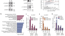 Insulin resistance phenotype of Jmjd1a-S265AKI/KI mice. a Body weight changes. WT (+/+) and Jmjd1a-S265AKI/KI mice (WT: n = 6; Jmjd1a-S265AKI/KI: n = 8) were fed on HFD for 4 weeks at 30 °C, and then switched to 4 °C for 4 weeks. b, c Glucose tolerance test (GTT) (b) and insulin tolerance test (ITT) (c) in each genotype group mice fed on HFD after cold acclimation in a (WT: n = 6; Jmjd1a-S265AKI/KI: n = 7). d Assessment of insulin signaling as quantified by the phosphorylation of AKT-S473 in scWAT, BAT, or soleus from each genotype mice fed on HFD after cold acclimation presented in a. Uncropped images of the blots are shown in Supplementary Fig. 8. Data are mean ± s.e.m. (a–c) Student’s t test was performed for comparisons in a–c. *P < 0.05 and **P < 0.01 were considered statistically significant