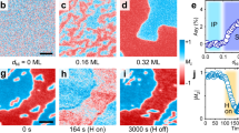 The role of hydrogen in the material embrittlement in metals and alloys stimulated detailed investigations on its molecular kinetics of adsorption, dissociation, and diffusion on and below metal surfaces16,17. The incorporation of hydrogen can significantly influence the magnetic properties of materials18, for example by changing the effective magnetic moment, modifying the magnetic anisotropy19,20,21, or tuning the interlayer exchange coupling22. However, very little is known about the role of hydrogen in tailoring non-collinear spin states, in particular, inducing magnetic skyrmions in ultrathin films and multilayers by means of hydrogen exposure has not been reported yet.