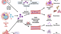 The role of autophagy in cancer is complex since it can both suppress cancer initiation and promote the growth and maintenance of established tumours28. Recent investigations suggest that autophagy facilitates multiple steps in the metastatic cascade29,30. Indeed, a role for autophagy in supporting tumour cell dormancy has been suggested15 but experimental evidence has been limited17,18. The results described in this study demonstrate that BC cells utilise autophagy while in a dormant state. Further, inhibition of autophagy drastically impairs the survival of dormant BC cells in vitro and in vivo.