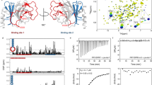NMR spectra were acquired at 298 K on a Bruker Avance III NMR spectrometer equipped with a cryogenic triple resonance gradient probe head at a magnetic field strength corresponding to a proton Larmor frequency of 800 MHz. Samples were measured at concentrations ranging between 0.1 and 0.5 mM in 20 mM Na2HPO4, 150 mM NaCl, 0.5 mM TCEP at pH 6.5. All spectra were processed with NMRPipe68 and analysed using Sparky69, CCPNMR70 and CARA (http://cara.nmr.ch). For backbone resonance assignments of the PRYSPRY domain, HNCACB, CBCA(CO)NH and HNCA spectra were recorded. Backbone resonance assignment was obtained to a completion of 95% (175 out of 184 HN-N resonances). Backbone resonance assignments of the Y463S/Y476S double mutant was possible by tracing the peak shifts. Ambiguous peak positions were left out of the analysis. Peak intensities for NMR titrations were calculated in SPARKY by keeping the linewidth constant during fitting and manually corrected for dilution during the titration.
