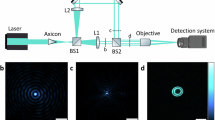 An accurate estimate of the scattered (and absorbed) photon energy is critical to predict the magnitude of radiation-pressure force on a bead. Several approaches have been used to estimate qs and qa in Eq. (1). Among them, Generalized Lorenz-Mie Theory (GLMT)51 is applicable for estimating Frad from a focused Gaussian beam on a bead of arbitrary shape and size. Our MATLAB implementation of GLMT showed that the normalized axial radiation-pressure force (that is, Frad per unit power), \(\bar F_{{\mathrm{rad}}}\), from the PF forcing beam on a bead was on the order of 0.2–0.3 pN mW−1 at the focal plane when the focal spot size of the beam was comparable to the bead diameter (Fig. 1b). The force was lower as the focal spot size deviated from the bead diameter. Moreover, \(\bar F_{{\mathrm{rad}}}\) increased monotonically with both beam waist and bead diameter when the two dimensions were comparable, whereas \(\bar u_0\) decreased beyond a certain point (Fig. 1c) because the oscillation amplitude is both directly proportional to \(\bar F_{{\mathrm{rad}}}\) and inversely proportional to a (Eqs. (2) and (3)).