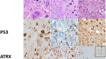 Immunolabeling for the ATRX protein was performed on FFPE sections as previously described67. Briefly, heat-induced antigen retrieval was performed using citrate buffer (pH 6.0, Vector Laboratories). Endogenous peroxidase was blocked with a dual endogenous enzyme-blocking reagent (Dako). Slides were incubated with the primary antibody rabbit anti-human ATRX (Sigma HPA001906, 1:400 dilution) for 1 h at room temperature and with horseradish peroxidase-labeled secondary antibody (Leica Microsystems), followed by detection with 3,3′-Diaminobenzidine (Sigma-Aldrich) and counterstaining with hematoxylin, rehydration, and mounting. IHC for several cases in the validation cohort was also immunolabeled by HistoWiz Inc. (histowiz.com) using a Bond Rx autostainer (Leica Biosystems) with heat-mediated antigen retrieval using standard protocols. Slides were incubated with the aforementioned ATRX antibody (1:500), and Bond Polymer Refine Detection (Leica Biosystems) was used according to the manufacturer’s protocol. Sections were counterstained with hematoxylin, dehydrated, and film coverslipped using a TissueTek-Prisma and Coverslipper (Sakura). Nuclear staining of ATRX was evaluated by a neuropathologist.