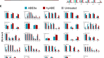 High-throughput sequencing data have been deposited in the NCBI Sequence Read Archive database under accession code (SRP140663). Plasmids pUC57-Sa sgRNA (107720) expression vector, pGL3-U6-sgRNA-EGFP (107721), pGL3-U6-sgRNA-BFP (107722), and pCMV-ABE (107723) are available from Addgene. All other data are available upon reasonable request.