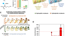 The backbone of the supramolecular polymer presented here contains robust RhMOPs, which embed permanent microporosity in the amorphous network. The CO2 adsorption experiments performed on CPP-1 and SAG-1 at 195 K demonstrate that the intrinsic porosity of the monomer is preserved through the supramolecular polymerization, as evidenced by the type 1 isotherm obtained in both cases (Fig. 5d). In addition, the CO2 uptake at P/P0 = 0.95 of SAG-1 (68.64 cm3/g and 40.23 mol(CO2)/mol(C12RhMOP)) clearly outperforms the porous monomer (46.01 cm3/g and 22.20 mol(CO2)/mol(C12RhMOP), Supplementary Figure 31). This significant improvement can be ascribed to the nanostructure of SAG-1: the small particle size and the presence of macropores enhances gas diffusion and uptake, while C12RhMOP is a bulk powder containing aggregates in the micrometric regime (Supplementary Figure 32). The importance of the nanoscale structure for gas sorption properties is further illustrated by comparing the gas uptake for two differently sized CPP-1 samples. The CO2 uptake of CPP-1 particles of an average size of 53 ± 10 nm (CPP-1_small) was 38.50 mol(CO2)/mol(C12RhMOP) (70.4 cm3/g), while the uptake of CPP-1 particles of an average size of 181 ± 50 nm (CPP-1_big) was 31.46 mol(CO2)/mol(C12RhMOP) (57.53 cm3/g). As their molecular compositions are the same, the difference in CO2 uptake can only be attributed to the difference in particle size.