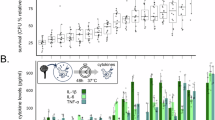 Heat-inactivated Aspergillus conidia (1 × 107/mL) were FITC-labelled by incubation with FITC at a final concentration of 0.1 mg/mL (SIGMA) in 0.05 M Na carbonate buffer (pH 10.2) at 37 °C for 1 h. Unbound FITC was washed away by centrifugation three times in PBS–0.1% Tween 20, and labelled conidia were resuspended in RPMI1640, counted and adjusted to a concentration of (4 × 108/mL)61. For in vivo experiments the luciferase-expressing Aspergillus fumigatus 2/7/1 strain was used29, this strain contains two genomic lucOpt integrations under control of the Aspergillus gpdA promotor that regulates stable luciferase expression62. The strain has a similar antifungal susceptibility as its parental CBS144.85 strain and demonstrates no growth defects under various in vitro cultivation conditions such as different temperatures and carbon sources29. In corticosteroid immunosuppressed mouse models of aspergillosis62, the 2/7/1 strain demonstrated a similar virulence as observed for its parental strain CBS144.8563,64.