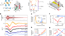 To conduct optical-pump reflectance-probe measurements on a Pt thin film (thickness of 30 nm), the beam of p-polarized laser pulses (duration 14 fs, center wavelength 800 nm) from a cavity-dumped Ti:sapphire oscillator (repetition rate 1 MHz) was split into pump and probe pulses at a power ratio of 4. The pump and probe beams were incident onto the sample at angles of 45° and 50°, respectively. The pump-induced modulation of the reflected probe power was measured using a photodiode and lock-in detection and yielded the relative pump-induced change \({\mathrm{\Delta }}R(t)/R_0\) in the sample reflectance. The pump-pulse parameters, the thickness of the Pt film (30 nm), and the absorbed pump fluence (400 µJ cm−2) were chosen such to obtain excitation conditions similar to those used for measuring the spin current (Fig. 4b).