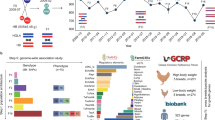 We formulate static and dynamic models to estimate QTL genotype-specific parameters by associating marker data and phenotypic data for n interspecific pairs of strains. Let \(N_i^{\mathrm{A}}(t)\) and \(N_i^{\mathrm{B}}(t)\) denote the abundance of individuals from species A and B in a pair (i) of strains at time t (t = 1, …, T). A mixture-based likelihood model has been widely used to map QTLs for complex traits42. Considering microbial abundance data at time t, the likelihood is written as