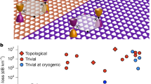 In bosonic systems, the most common methods to break TR symmetry is using a gauge field, e.g., a magnetic field for photons34 or an effective gauge field generated with a dynamic modulation for phonons35,36/photons37. However, in order to obtain TR-invariant bosonic QSHE, a totally different approach is needed. TR operator of bosons (Tb2 = + 1) is essentially distinct from that of fermions (Tf2 = −1), meaning that bosonic systems cannot naturally guarantee Kramers degeneracies, a prerequisite for QSHE. Consequently, the quest of realizing bosonic QSHE solely relies on the construction of artificial bosonic spin-½ states (herein referred as pseudospins) under a pseudo (fermi-like) TR symmetry (Tp2 = −1). Generally, these pseudospins can be emulated through polarization or modal hybridization. For instance, two degenerate modes M1 and M2 can be hybridized to construct these pseudospins: spin+/− ≡ M1 + iM2/M1 – iM2, if only \({\it{M}}_{\mathrm{1}}\mathop{\longrightarrow}\limits^{{{\it{T}}_{\it{p}}}}{\it{M}}_{\mathrm{2}}\) while \({\it{M}}_{\mathrm{2}}\mathop{\longrightarrow}\limits^{{{\it{T}}_{\it{p}}}} - {\it{M}}_{\mathrm{1}}\). In our elastic plate, an elastic fourfold degeneracy can be accidentally formed [see details in Supplementary Note 1], further leading to the pseudospins for elastic waves under the pseudo TR symmetry, as exemplified in Fig. 1.