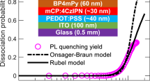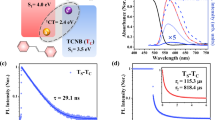 As shown in Fig. 1c, the absorption spectrum of the CN-Cz2:PO-T2T (1:1 weight ratio) exciplex system was identical to the combination of pristine CN-Cz2 and PO-T2T films, inferring negligible intermolecular interaction for the mixed films in the ground state. The PL spectrum was significantly red-shifted relative to both of the constituent molecules, correlating well with the energy difference between HOMO of CN-Cz2 (−5.70 eV determined by photoemission spectrometer, Supplementary Fig. 5) and LUMO of PO-T2T (−2.83 eV). The PLQY (ΦPL) for CN-Cz2:PO-T2T film was measured to be 55% in air (Supplementary Fig. 6). Figure 1d shows the decay curves of CN-Cz2:PO-T2T from the prompt emission (τ1 = 35.68 ns) to the end of delayed fluorescence emission (τ2 = 3.39 µs) at 300 K.