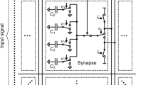 For the demonstration of the associative neural network in Fig. 3, synapse programming in Fig. 4, and signal classification in Fig. 5, a time-division multiplexing scheme was employed that the pre-synaptic signal to the upper synapse would be active in the first period (e.g., 20 μs) while the input to the lower synapse (always at zero potential in this period) would be high-impedance or floating (see Supplementary Figure 10). This was reversed in the next period of 20 μs. The input was only floating when its signal was at zero potential, which maps “0” to high-impedance equivalently. The high-impedance input was realized with series AD8180 multiplexers (Analog Devices Inc.) connecting the pre-synaptic signal outputs from the Keysight 33622A.