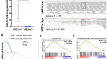 Total RNA was isolated using TRI Reagent (Sigma-Aldrich, T9424) according to the manufacturer’s instructions. In total, 500–2000 ng of RNA was reverse transcribed using Superscript II (Invitrogen 18064014). For standard PCR, products were visualized using 1% agarose gels. Q-PCR reactions were performed using Takyon ROX Master Mix (Eurogentec UFRP5XC0501) and the StepOne Plus platform (Applied Biosystems). Target transcript levels were normalized to GAPDH, and relative abundance was determined using the ΔΔCt method. Transcript-specific TaqMan assays were purchased from Integrated DNA Technologies. For tumor xenografts, XBP1u and XBP1s transcript levels were normalized to the average Ct of control gene, ACTB using the ΔΔCt method. MDA-MB-231 cDNA was used as the control sample for ΔΔCt calculations. Percentage XBP1 mRNA splicing was determined by calculated as XBP1s/(XBP1s + XBP1u) × 100. Sequences of primers and probes used are detailed in Supplementary Table 3.