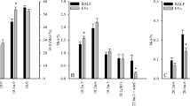 Gene expression of IL4 and eotaxin (CCL11) were probed with SYBR green qPCR in relation to β-actin. Total RNA extracted from left lungs was purified with the RNeasy Mini kit (Qiagen, Germantown, MD) per manufacturer’s instructions. The amount of cDNA for each tissue was confirmed with a NanoDrop spectrophotometer (Thermo Scientific, Burlington Ontario). Total RNA (1000 ng) from each sample was converted to single-stranded cDNA using the Quantiect RT-PCR kit (Qiagen, Germantown, MD) with 10 µM of random primers. PCR amplification was carried with a 20 µl reaction volume containing 1 µl of a cDNA, 7 µl ddH2O, primers at 1 µL each, and 10 µL SYBR green (QuantiNova Qiagen, Germantown, MD). PCR was performed under the following conditions: 95 °C for 3 min followed by 45 cycles of denaturation (95 °C for 30 s), annealing (60 °C for 30 s), and elongation (72 °C for 1 min), followed by 3 min at 72 °C before refrigeration (4 °C) with melt curves produced for all samples; samples for each rat and gene were run in triplicate with the Eppendorf Mastercycler (Eppendorf, Mississauga ON). The primer sequences for IL4, CCL11 (eotaxin) and β-actin are presented in supplementary table 2. Data are expressed as cycles threshold and 2∆CTT was calculated by standard methods68. Data were compared with Student’s unpaired two-sided t-test or Mann Whitney Rank Sum Test (inflammation score).