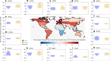 The future SPEI projections are calculated using two ensembles of nine regional climate simulations (involving four different RCMs and five GCM runs; Supplementary Table 2) spanning the period of 1970–2099. Both include the same members, but one assumes the moderate RCP4.5 and the other assumes the more extreme RCP8.5 scenario. The simulations were performed under the umbrella of the Euro-CORDEX project64, covering Europe with a spatial resolution of 0.11 degrees both in latitude and longitude, the finest so far in this type of climatological multi-model and multi-scenario experiment. These are the RCMs that had the necessary variables at the moment of the design of our study, and they have been extensively validated (see, e.g.,64,65). The Euro-CORDEX data are interpolated to the regular 0.5 degree resolution grid of the CRU database using nearest-neighbours prior to any other further transformation. For each RCM, the parameters that are required to calculate the SPEI are determined relative to the distribution of the reference period 1971–2000 at each grid point. The fitted parameters are then used to calculate the historical and future SPEI series.