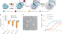 Scaffolds seeded with Luc+ZsGreen+hMAB and mFB were cryopreserved after 8 days of static culture following an established protocol29. Briefly, samples were cooled slowly (−1 °C min−1) while immersed in 40% PM, 50% FBS and 10% Dimethyl Sulfoxide (Sigma). Slow cooling was achieved at −80 °C overnight. Samples were stored in the vapour phase of liquid nitrogen for 2 weeks. They were thawed rapidly in a 37 °C water bath and incubated in PM for 24 h before being cultured for additional 7 days in static conditions using DM. Scaffolds were imaged and analysed with IVIS at specific time points.