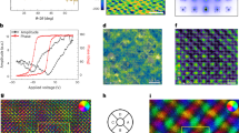 Coupling between the methylammonium dipoles and an applied electric field was studied through numerical simulations using the Monte Carlo method. These simulations were based off of the StarryNight code, available online, that was developed by Aron Walsh’s group for describing the rotational dynamics and interactions of methylammonium cations in bulk lead-iodide perovskites28,97. The code simulates a three-dimensional cubic lattice of interacting dipoles subjected to an electrostatic field and advances through a Metropolis algorithm. In order to simulate layered perovskites, the periodic boundary conditions in one direction were removed. In addition to the existing energetic interactions of the Hamiltonian (applied electrostatic field interaction, dipole–dipole interactions, and local cage strain term), the interactions of the dipoles with the polarizable dielectric barriers of the quantum wells was included. Dipole–dipole interactions were limited to three lattice units of nearest neighbours. A lattice of 80 × 80 × 2 unit cells was built to simulate the n = 3 layered perovskite. The dipoles were initialized with random orientations and were allowed to freely rotate. The simulations were done at a temperature of 300 K and the lattice constant was altered to reflect a lead-bromide lattice. Simulations were done for 4 million Monte Carlo moves, after equilibrating for 100,000 moves. The average angular position of the dipoles was recorded every 20,000 moves, and then averaged to find the net angular rotation for a given field strength.