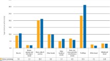 Participants completed a 4-day pre-coded dietary record, developed and used at the National Food Institute at the Technical University of Denmark69,70 to assess the habitual dietary intake in the national dietary survey. The record was filled out on two weekdays and two weekend days at study start and at the end of both interventions. Daily intake of total energy, macronutrients, certain food components and food groups were calculated (habitual diet only without estimates from intake of study products). The gluten content of the study dietary products was calculated based on data from the food database at the Danish Food Composition Databank containing 1049 food items71.