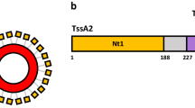 Bacterial strain details are given in Supplementary Table 8. E. coli strains JM83 and DH5α were used for routine cloning steps. B. cenocepacia strain H111 and A. hydrophila ATCC 7966 were the source of the TssA1B and TssA2A subunit genes, respectively. LB was routinely used for growing bacteria except where indicated43. Lennox medium was used with glucose included at 0.2%44. D-BHI broth was made by dissolving 9.25 g brain-heart infusion (BBL) in 25 ml water and dialysed (12,000–14,000 MWCO) against 500 ml water overnight45. Antibiotics were used at the following concentrations for E. coli: ampicillin, 100 μg/ml; kanamycin, 50 μg/ml; chloramphenicol, 25 μg/ml; trimethoprim, 25 μg/ml (selection for trimethoprim resistance was applied in/on iso-sensitest (IST) broth/agar (Oxoid)). Bacto MacConkey agar base used for two-hybrid assays was obtained from Becton, Dickinson and Co.