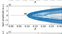 A particular concept that has attracted recent interest is to build optical artificial spin networks using degenerate optical parametric oscillators (DOPOs)11. In these coherent Ising machines (CIMs), spins are represented by the optical phase of the DOPOs, which is either 0 or π relative to the pump laser driving the DOPO generation process. Implementation of the Ising Hamiltonian is then achieved by mutual optical coupling either with delay interferometers12,13 or opto-electronic measurement feedback schemes14,15. Contrary to typical quantum annealing devices, opto-electronic CIMs can implement and simulate arbitrary coupling topologies for large spin systems, and they have been successfully used to study different large-scale problems from one-dimensional (1D) spin chains12,13 to NP-hard optimization problems14,15. By taking advantage of fast field-programmable gate array (FPGA) hardware, CIMs have also demonstrated a significant speed-up for dense graph structures over conventional methods such as simulated annealing14. However, while some efforts have been made to understand the operating principle of CIMs16,17,18,19,20, there is still considerable ambiguity regarding how they evolve to their lowest energy state and what factors can limit the calculation performance. Among the open questions are the apparent scaling of the calculation performance with the optical pump power or the effective temperature of the implemented spin system13.