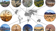 Climate directly impacted the observed BPR patterns, which were expressed through differing associations of climatic variables vs. richness and climatic variables vs. productivity in different regions of the climate space (Fig. 4). In general, MAT had a negative but non-significant association with richness within each climatic unit for the arid and semi-arid regions, a significant positive association for cold-mesic regions, and a significant negative association for hot-mesic regions (Fig. 4a). The associations of MAT vs. productivity were mixed in the arid and semi-arid regions, but had a similar pattern to MAT vs. richness in the mesic region (Fig. 4c). The associations of TAP vs. richness and TAP vs. productivity were similar within each climatic unit across the climate space (Fig. 4b, d). In general, richness and productivity had positive associations with TAP in dry climatic units, but negative associations in mesic climatic units. Overall, there were more climatic units that had statistically significant associations (at 95% credible interval) between MAT and richness (31 units) and between MAT and productivity (35 units) than between TAP and richness (22 units) and between TAP and productivity (23 units).