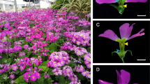 In July 2014, four flowers per plant were collected from the top, centre and bottom part of the inflorescence, respectively. Flowers were flash frozen in liquid nitrogen and ground to powder using a tissue lyser (Retsch Technology, Germany). Fifty percent of each sample were weighed, transferred to a 2 ml tube and flavonoids were extracted in 500 μl of 80% methanol (MeOH). Samples were ground again in solution, incubated overnight at 4 °C and centrifuged at 11,000 × g and 4 °C for 10 min. Supernatants were transferred to 1.5 ml tubes, evaporated in a Savant SpeedVac concentrator (Thermo Fisher Scientific, USA) at 42 °C and resuspended in 100 μl 50% MeOH + 0.1% formic acid. After sonication for 5 min, samples were centrifuged at 11,000 × g and 4 °C for 5 min, and transferred to liquid chromatography vials. Samples were run on a UHPLC (Dionex UltiMate 3000, Thermo Fisher Scientific, USA) coupled to a Bruker compact electrospray ionisation-quadrupole-time-of-flight tandem-mass spectrometer (Bruker Daltonics, USA). The UHPLC separation was performed with a C18 reverse-phase column (ACQUITY UPLC TM BEH C18, 1.7 µm, 2.1 × 150 mm, Waters, USA) at 28 °C using the following gradient of solvent B (acetonitrile with 0.1% (v/v) formic acid) and solvent A (water with 0.1% (v/v) formic acid): 0–0.5 min, 5% B; 0.5–12 min, 5–100% B; 12–14 min, 100% B; 14–16 min, 100–5% B. The flow rate was set up to 0.3 ml min−1 and 5 µl of each sample was injected. The ESI source was operated in positive mode and parameters were set as follows: gas temperature, 220 °C; drying gas, 9 l min−1; nebuliser, 2.2 bar; capillary voltage, 4500 V; end plate offset, 500 V. The instrument was set to acquire an m/z range of 50–1300. Conditions for MS/MS were set as described by Christ et al65. All data were recalibrated internally using pre-run injection of 10 mM sodium hydroxide in 0.2% formic acid, 49.8% water, 50% isopropanol (v/v/v). Data Analysis v.4.2 (Bruker Daltonics, USA) and TargetAnalysis v.1.3 (Bruker Daltonics, USA) were used to analyse the data. Absolute flavonoid quantification was based on standard curves and this analysis was performed using QuantAnalysis v.2.2 (Bruker Daltonics, USA). Flavonoids were identified and annotated by comparison with authentic reference standards data, specifically: m/z and MS/MS data, ultraviolet spectrum and retention time profiling except for cyanidin-3-(6-malonylglucoside), for which no reference standard was available. This compound was tentatively identified by an interpretation of the data spectrum obtained and based on previous results66. The identified peaks were integrated and standardised by flower tissue weight and the molecular weight of the compound. Concentrations of the two main compounds cyanidin-3-glucoside and cyanidin-3-(6-malonylglucoside) were calculated based on a calibration curve of cyanidin-3-glucoside. For comparison between morphs, standardised quantities were BoxCox transformed and assessed compound-wise with Holm-adjusted ANOVA and Tukey's HSD post hoc tests using the R package caret v.6.0-7662.