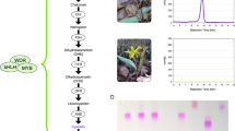 Carotenoids were re-extracted from the anthocyanin samples (see above). Eighty microlitres of hexane were added to each sample and the solution was vortexed and incubated on ice for 10 min. After centrifugation for 2 min at 11,000 × g, the upper phase was removed with a glass syringe and transferred to an amber glass vial (Supelco, USA). Samples were evaporated in a Savant SpeedVac concentrator (Thermo Fisher Scientific, USA) and resuspended in 100 μl diethyl ether. As described by LaFountain et al.67, the samples were subjected to saponification prior to analysis: 100 μl of 5% ethanolic KOH was added, and the samples were vortexed and incubated for 2 h in the dark at 21 °C. After addition of 400 μl hexane:diethyl ether (1:1), samples were washed with 500 μl H2O and placed on ice for phase separation. Washing of samples was repeated ca. 4–5 times until the pH of the aqueous phase appeared neutral on pH indicator paper. The upper phase was transferred to a vitreous UHPLC vial (Infochroma, Switzerland) and evaporated in a SpeedVac concentrator. Samples were re-solubilised in 60 μl acetonitrile:MeOH:H2O (87:10:3) and analysed on a C18 Hypersil ODS column (250 × 4.6 mm; Thermo Fisher Scientific, USA) at 25 °C using the following gradient of solvent A (20% 1 M ammonium acetate, 80% MeOH) and B (20% acetone, 80% MeOH): 0–15 min, 0–100% B; 15–25 min, 100% B; 25–28 min, 100–0% B; 28–32 min, 0% B. The flow rate was set up to 1 ml min−1 and 40 µl of each sample was injected. Parameters were controlled by a Gynkotek liquid chromatography system (Thermo Fisher Scientific, USA) equipped with a UVD340S diode array detector set at 450 nm for carotenoid identification. The two main carotenoids β-carotene and lutein were identified and quantified as described for the anthocyanins using calibration curves of authentic reference standards.