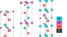 We investigated three MXenes with diverse macroscopic electronic transport behavior: Ti3C2Tx, Ti3CNTx, and Mo2TiC2Tx (Table 1). Ti3C2Tx (its structure is shown schematically in the Fig. 1a top inset) is the most studied MXene and is known to be metallic and highly conductive7. Density functional theory (DFT) studies have consistently predicted that surface functionalization reduces the Ti3C2Tx density of states (DOS) at the Fermi level (EF), suggesting a decrease in the charge carrier density and thereby a decrease in the conductivity43,55,56. Understanding of the next two MXenes—Ti3CNTx and Mo2TiC2Tx—is limited. The structure of Ti3CNTx is similar to Ti3C2Tx but with a mixture of C and N on the X-sites (Fig. 1b top inset). DFT predicts Ti3CNTx to be metallic for all terminations55,57,58, but to date, this MXene has only shown semiconductor-like transport (unpublished results). Mo2TiC2Tx is an ordered, double transition metal MXene analogous to Ti3C2Tx but with the outer Ti layers replaced by Mo layers59 (Fig. 1c top inset). Terminations have been predicted to induce metallic, semiconducting38, and topologically insulating60 states in this MXene. Experimentally, Mo2TiC2Tx shows semiconductor-like behavior in its as-prepared state38, but it is unclear if this behavior is due to intrinsic (Mn+1XnTx stoichiometry) or extrinsic (intercalation, inter-flake hopping) effects.