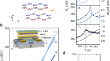 where Jx,y,z is the nearest-neighbor exchange interaction for spin components, and i and j run through all lattice sites and nearest neighbors, respectively. \(S_i^x\), \(S_i^y\), and \(S_i^z\) are the x, y, and z component of the total spin at i-site. The critical behaviors of 2D magnetic systems have been studied using layered magnetic crystals or ultra-thin metal films8. However, it is still desirable for one to investigate the major features of 2D magnetism using true 2D material. For the 2D Ising system (Jx = Jy = 0) the magnetic ground state is stable even in the 2D limit, whose experimental evidence has been recently presented using magnetic van der Waals materials: FePS3 9,10 with antiferromagnetic order and Cr2Ge2Te6 11 and CrI3 12 with ferromagnetic order.