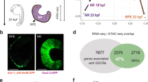 Mice were euthanized using carbon dioxide followed by cervical dislocation. Isolated mouse embryos for histopathology were dissected on ice-cold phosphate buffered saline (PBS) and fixed overnight in phosphate-buffered 4% paraformaldehyde at 4 °C. Methacrylate sections through the optic fissure (eyes) or in appropriate sagittal orientation, stained with hematoxylin and eosin (H&E), were used for histopathology. In situ hybridization was performed using a Fat4 probe that included the 3′ UTR cloned into a plasmid as previously described4,31. The plasmid for generating the Fat1 probe (ID 6841037) was from Open Biosystems (Lafayette, CO, USA). In situ and immunofluorescence staining of mouse cryo-sections was performed as previously described32. For RPE flat-mounts, mouse embryonic (E14.5–15.5) eye cups were isolated and dissected to remove presumptive neural-retina. The surrounding choroidal tissue was not removed completely to provide structural support to the RPE monolayer. The dissected out RPE was immuno-stained with ZO-1 and F-Actin as described below. The plane of RPE during confocal imaging of flat-mounts was determined by adding a transmitted PMT (T-PMT) to visualize the location of melanosomes present on the apical side of RPE.