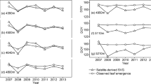 Zhu, Z. et al. Global data sets of vegetation leaf area index (LAI)3g and fraction of photosynthetically active radiation (FPAR)3g derived from global inventory modeling and mapping studies (GIMMS) normalized difference vegetation index (NDVI3G) for the period 1981 to 2. Remote Sens. 5, 927–948 (2013).