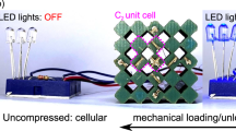 A macroscale (about 250 mm by 250 mm) NAND gate was 3D-printed using ABS plastic (with an elastic modulus of 2230 MPa) as shown in Fig. 3a. To deform the structure into the buckled shape, the two rigid bodies G1 and G2 were compressed inward while the rigid body G3 is fixed to the ground. An Instron mechanical tester was then used to measure the force-displacement relationships of the NAND gate’s input(s) when switching between different logic states. Figure 3b plots the total force on the rigid bodies A and B against their vertical displacement when the NAND gate transitioned from Mode I (0 NAND 0) to Mode IV (1 NAND 1). FEA and experimental confirmation of other logic transitions for the NAND and NOR gates can be found in Supplementary Figure 5. The experimental results agree with the FEA results obtained from COMSOL to within the error of the measurement.