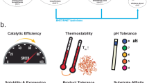 For the creation of single-site mutants, either the Q5 site-directed mutagenesis kit (New England Biolabs) or the QuikChange® method were used. In the first case, the kit was used according to the manufacturer’s instructions. In case of the QuikChange® method, a standard PCR mixture (25 µL) consisting of 2.5 µL 10× Pfu buffer (Roboklon GmbH, Berlin, Germany), 0.5 µL mixed deoxynucleoside triphosphates (0.25 mM each), plasmid DNA (~40 ng), 1.25 µL forward and reverse primers (10 µM; Supplementary Table 4), 1 µL PfuPlus! polymerase (Roboklon GmbH) and 18.1 µL ultrapure water was used. For denaturation, the temperature was held at 95 °C for 30 s. Afterwards 20 cycles of 30 s denaturation at 95 °C, annealing for 30 s at 63 °C and elongation for 6 min at 72 °C were conducted. In a last step the final elongation was accomplished at 72 °C for 10 min. After PCR, the template DNA was digested with DpnI (New England BioLabs) for 2 h at 37 °C before the enzyme was inactivated at 80 °C for 10 min. E. coli TOP10 cells were transformed with the obtained PCR products and plated on LB agar plates containing 100 µg mL−1 ampicillin and grown overnight at 37 °C. The nucleotide sequence was confirmed by sequencing at Eurofins (Ebersberg, Germany).