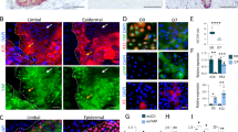 Collagenase-treated whole human corneas were transferred into Transwell culture inserts, washed 3 × 5 min and scraped with an excess of sterile PBS using a rubber-blade cell scraper (Sarstedt) to detach and remove the loosened epithelium, and then seeded with 5 × 105 LESCs in 2 mL of CnT-7 medium. Corneas mock-treated with PBS were used as non-softened controls, using a rigid cell scraper (Corning) to remove the epithelium. The complete removal of epithelial cells was performed and verified in both treated and control conditions using a bright-field microscope. For the ex vivo alkali burn model, human corneas were similarly processed after treatment with strips of filter paper soaked with 0.5 M of NaOH (alkali) or sterile PBS (control) for 60 s, followed by 3 × 5 min washes with an excess of sterile PBS. A subgroup of alkali burn corneas were also subsequently subjected to collagenase treatment, as described. Organ culture was performed at 37 °C and 5% CO2 in CnT-7 medium for 2 weeks, followed by a 1-week period in SHEM and air-lifting13, with media change every 2 days. The central region of collagenase-treated and control corneas was monitored daily by bright-field microscopy to evaluate re-epithelialisation, and analysed by confocal immunofluorescence microscopy, as described above. Experiments were performed three independent times (n = 3), each with cells and corneal tissue from independent donors.