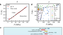 Dilatometry was performed using a bespoke apparatus that operated up to 0.3 GPa over a temperature range of ~193–433 K. Molten NPG samples of mass ~1 g were encapsulated inside stainless-steel containers to remove any residual air. Each container was then perforated by a stainless-steel piston, whose relative displacement with respect to a surrounding coil could be detected via measurement of electromotive force59.