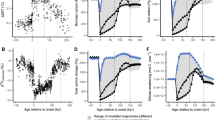 where T1 and T2 are age control points, respectively; ai is the accumulation rate at level i, which is assumed to be proportional to MGS; n is the total sampling level between T1 and T2; and m is the sampling level at T1 and T2. The age control points over the past 800 kyr were transferred from MIS boundaries2 by correlating them with interglacial palaeosol boundaries60,61. Between control points, interpolation weighted by grain size was used to derive the chronology (Supplementary Fig. 4).
