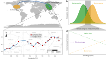 Across many environmental gradients, including within the Himalaya, community taxonomic composition appears to vary more or less continuously, both across elevation and geography (e.g. Supplementary Fig. 6). Based on observations such as these, Ricklefs31 argued that continuous turnover implies communities are artificial constructs, whose structure is heavily impacted by dispersal from elsewhere. Results presented here imply a more integrated local community than may be inferred from species lists. First, common species are shared over parts of the gradient, overlapping with common species that are present in other communities, thereby generating a network that can be partitioned into well-supported motifs. For example, most communities contain a common species of sunbird, which occupies a well-defined ecological niche. Most communities also contain one to several small warblers, occupying a different but again well-defined niche. Thus functional similarity of communities extends across the entire gradient. Turnover of species along the elevational gradient is not coincidental across the two groups, but in both cases different species are found above and below the freezing line. Second, if dispersal strongly affects community structure, then communities associated with more than one geographical motif should show elevated species numbers and phylogenetic diversity with respect to communities associated with just one geographical motif. We found no support for this (Supplementary Fig. 11). Species richness varies idiosyncratically both within and between motifs. Phylogenetic diversity monotonically declines with elevation, reflecting the increasing dominance of a single suborder, the oscines (order Passeriformes), which are thought to have become established from 35 million years onwards in association with a cooling climate28. Communities with tropical affinities are sourced by older lineages, and this overwhelms any potential effect of mixing on phylogenetic diversity.