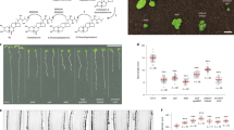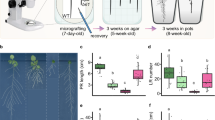 Root tissues were collected by excision and immediately frozen in liquid N. Total RNA was extracted with RNeasy Plant Mini Kit (Macherey-Nagel GmbH & Co KG, Germany). Quantitative reverse transcriptase PCR reactions were conducted with the CFX38TM Real-Time System and the Go Taq qPCR Master Mix SybrGreen I (Promega) using the primers listed in Supplementary Table 3. Relative expression for all genes was normalized to AtACT2 and AtUBQ10 as internal reference. Relative expression was calculated according to Pfaffl et al.63.